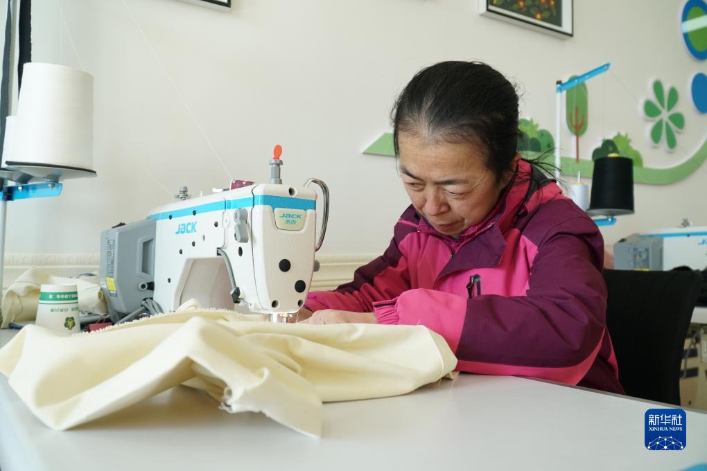 12月1日,在青海省西寧市星辰社會工作服務中心“智愛工作坊”輔助性就業基地,就業員工在縫製帆布袋。
