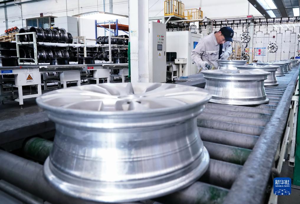 12月2日,工人在河北省秦皇島經濟技術開發區一家汽車輪轂企業的生産線上工作。