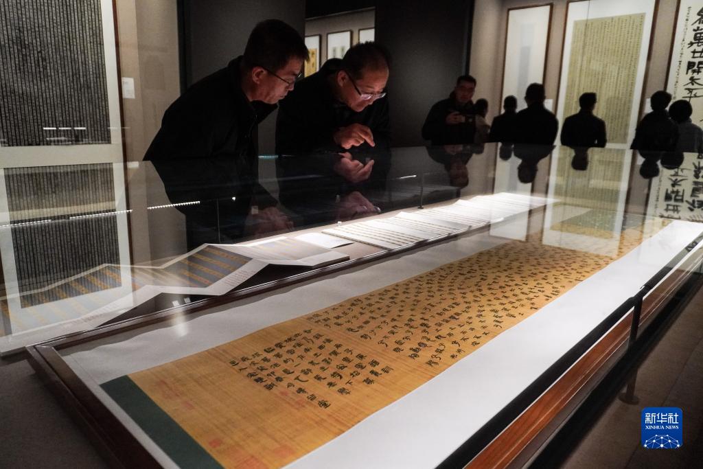 12月2日,觀眾觀看“簡述中國——2023全國簡牘書法大展”上的簡牘書法作品。