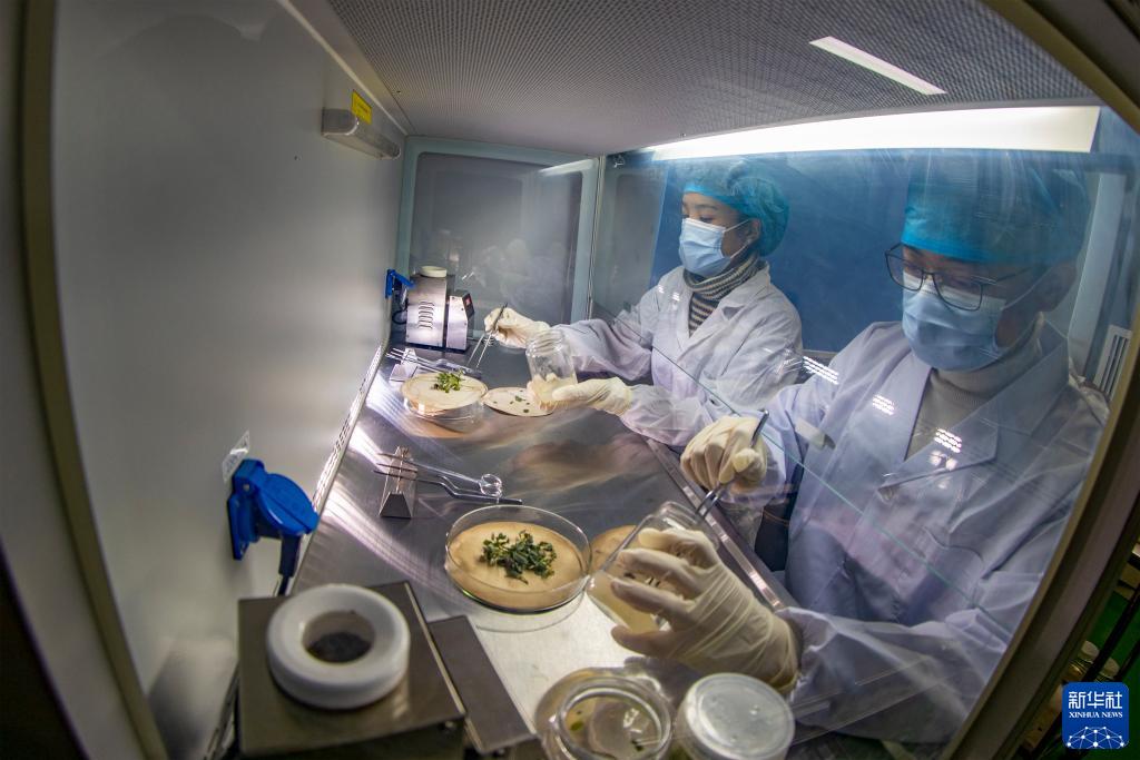 科研人員在進行植物組織培養和接種工作(11月30日攝)。