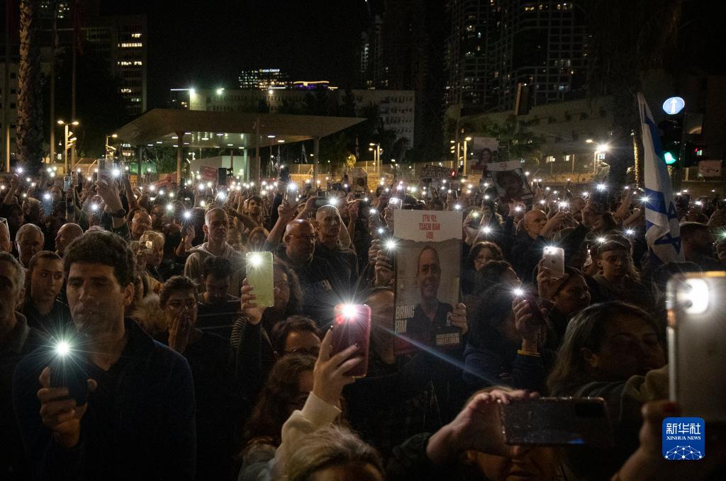 12月2日,人們在以色列特拉維夫參加集會,呼籲以色列政府採取措施讓全部被扣押在加沙地帶的人員盡快獲釋。