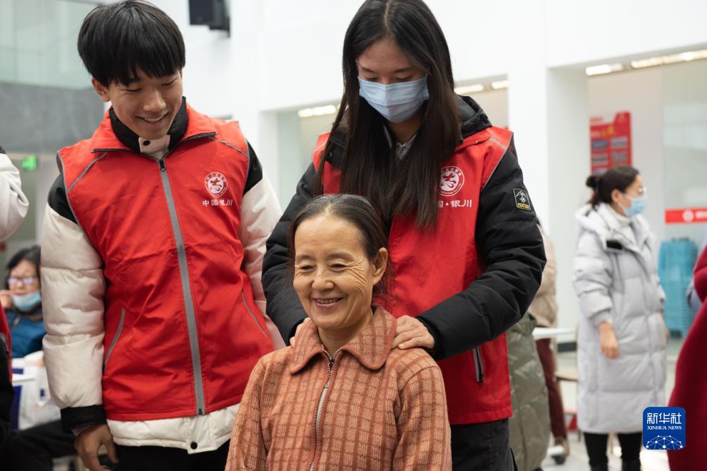 12月3日,寧夏醫科大學中醫學院針灸推拿專業的學生志願者為市民按摩。
