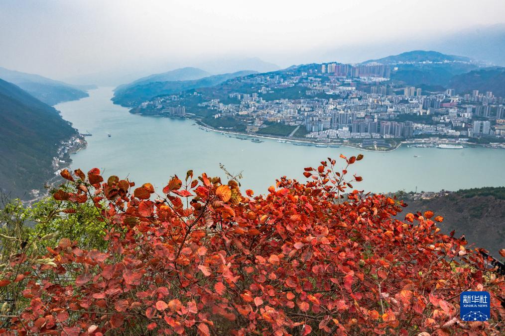 這是11月30日拍攝的紅葉掩映下的長江三峽重慶巫山縣水域景色。