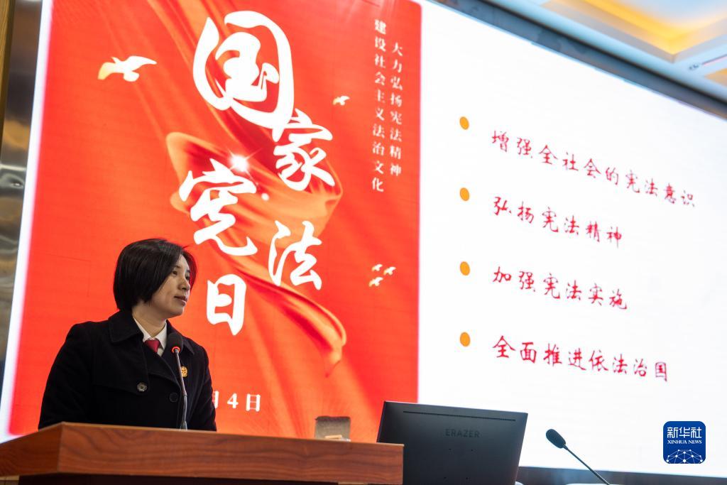 當日是第十個國家憲法日,湖南省長沙市瀏陽市第一中學聯合瀏陽市人民法院開展“憲法宣傳進校園”活動,向學生普及憲法知識,增強學生法治意識。