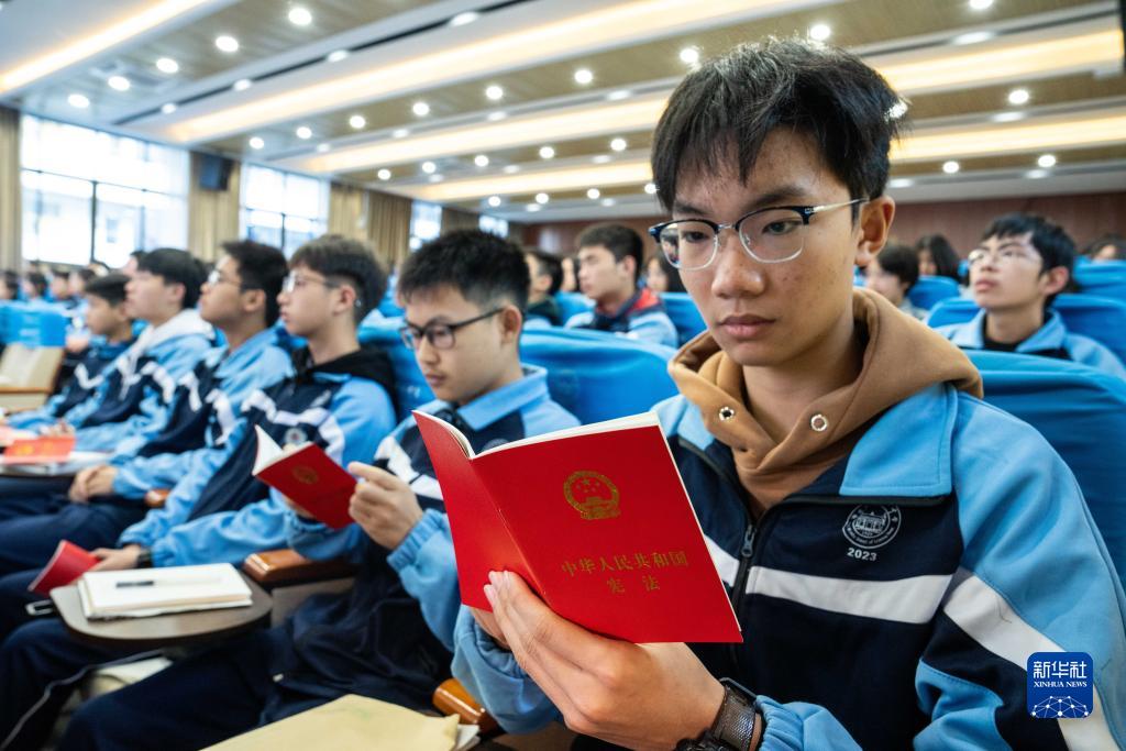 12月4日,在瀏陽市第一中學,學生在閱讀憲法讀本。