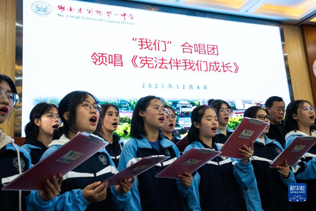12月4日,在瀏陽市第一中學,學生在合唱歌曲《憲法伴我們成長》。