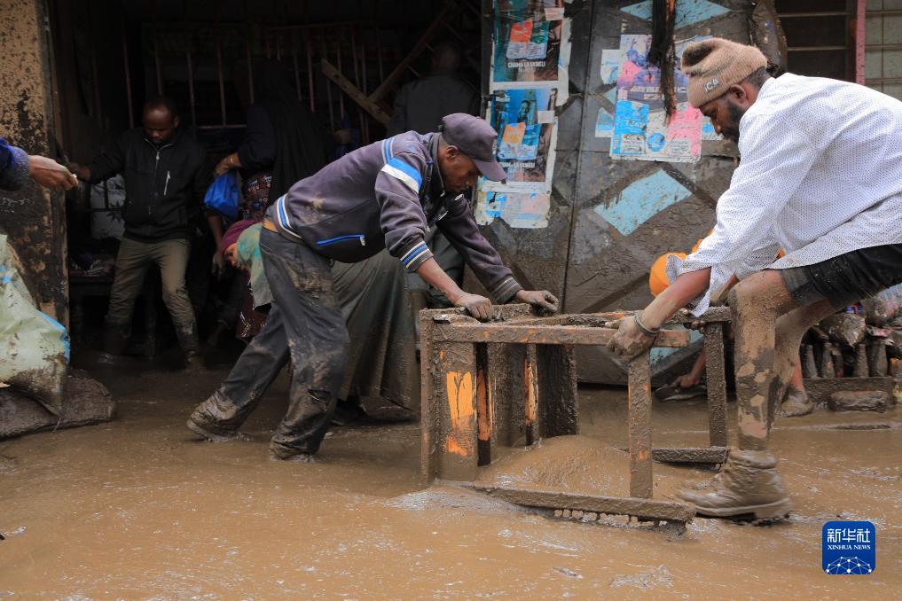 12月3日,在坦桑尼亞馬尼亞拉地區,當地居民在暴雨後從屋子裏搬出受損物品。