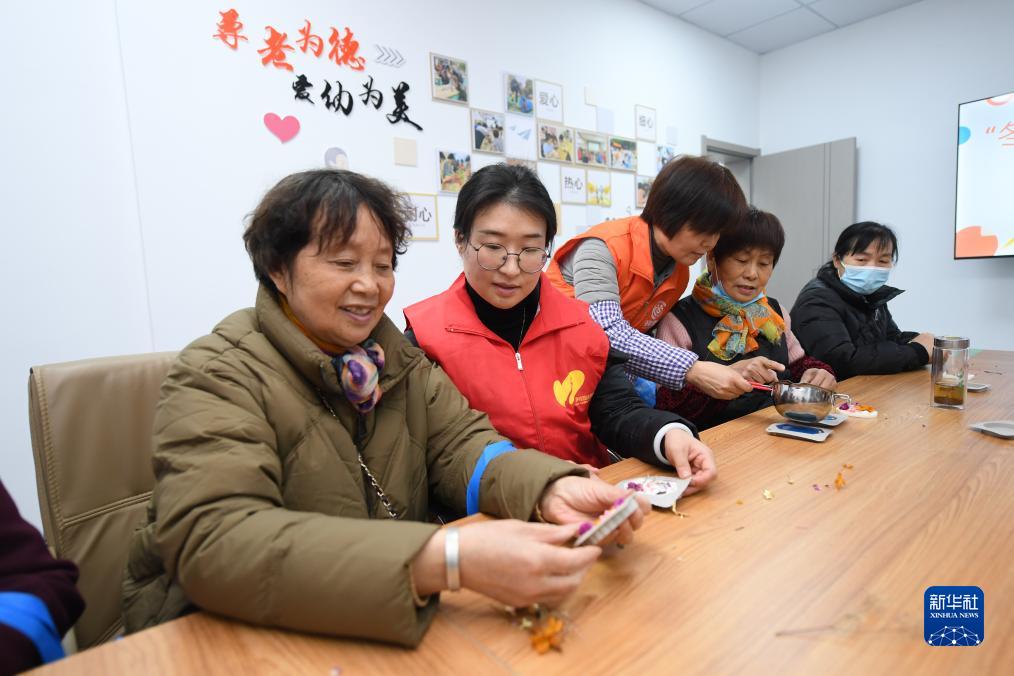 12月4日,在湖州市愛山街道龍庭社區,志願者在社區居家養老服務日間照料中心指導老人做香薰。