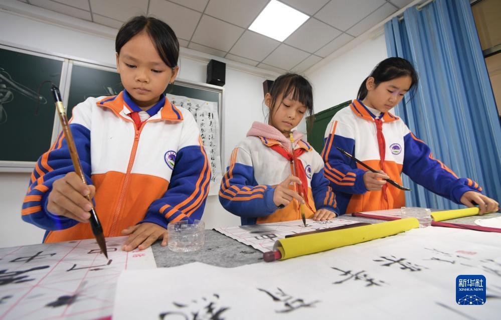 12月4日,學生在貴州省羅甸縣第二小學練習書法。