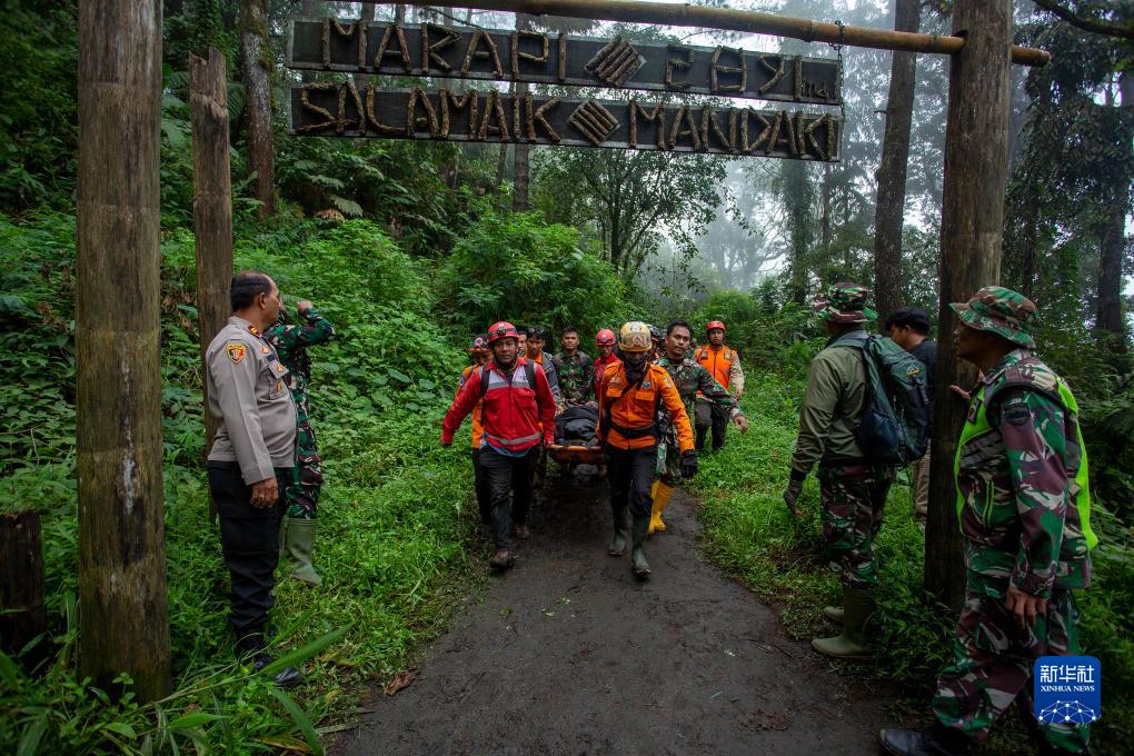 12月4日,在印度尼西亞西蘇門答臘省的馬拉皮火山附近,搜救人員轉移傷者。