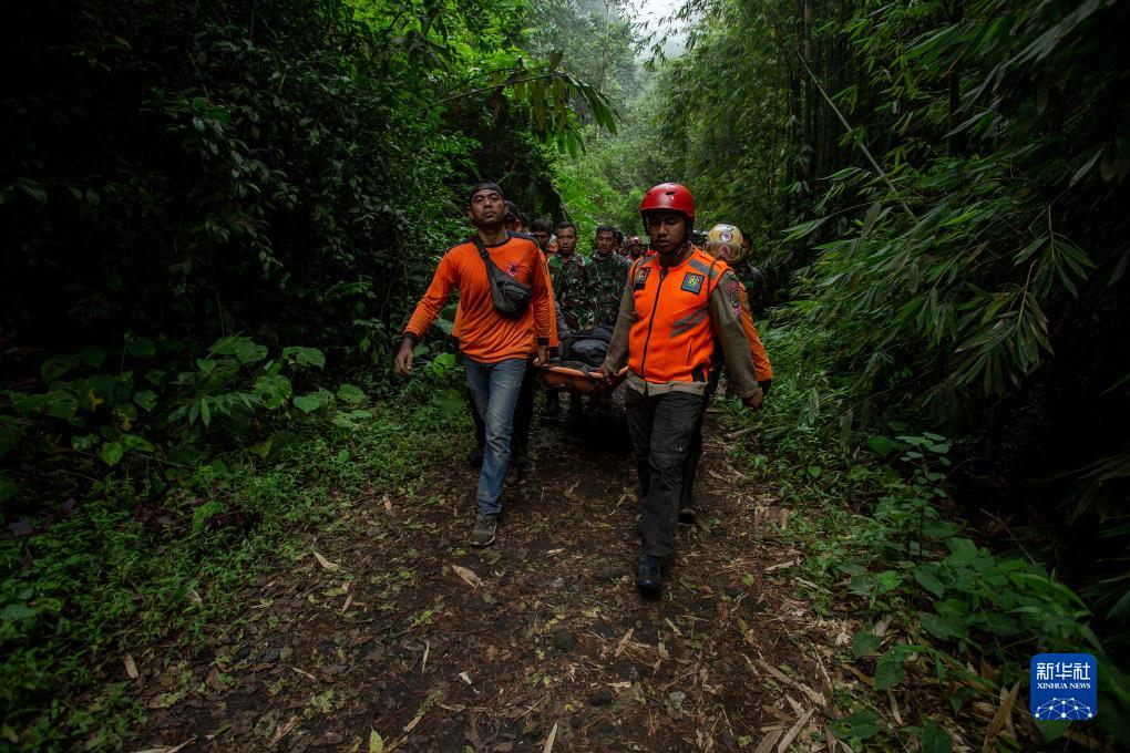 12月4日,在印度尼西亞西蘇門答臘省的馬拉皮火山附近,搜救人員轉移傷者。