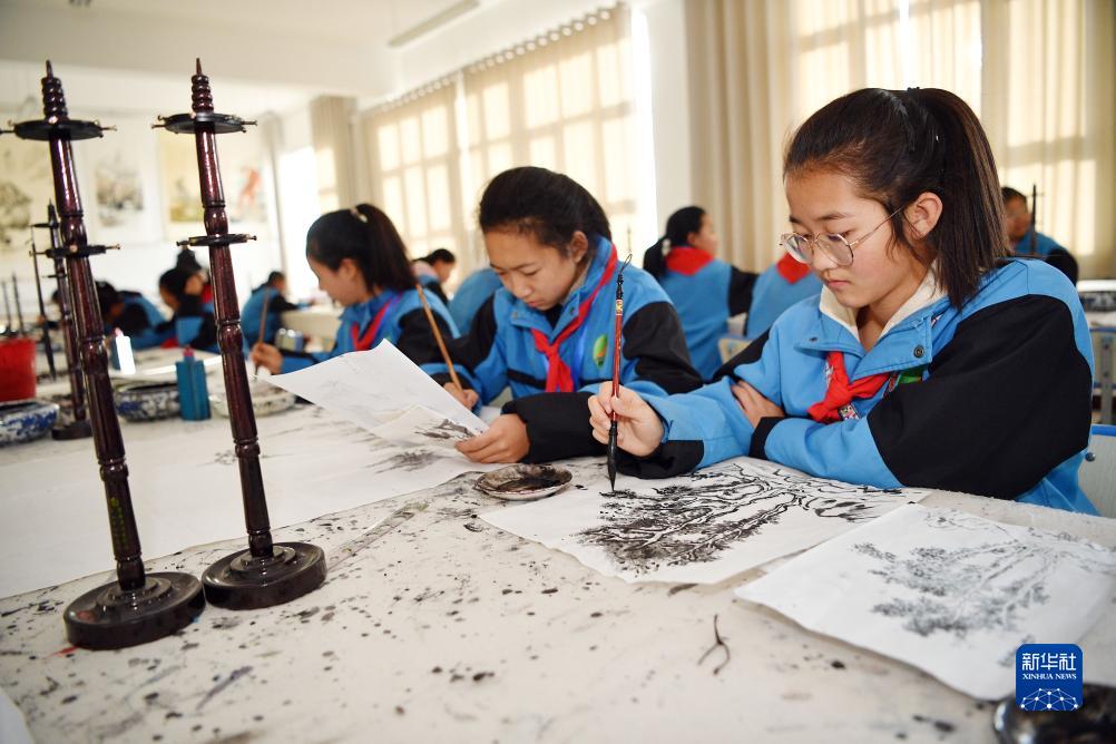 隆德縣第二中學學生在學習繪畫(11月30日攝)。
