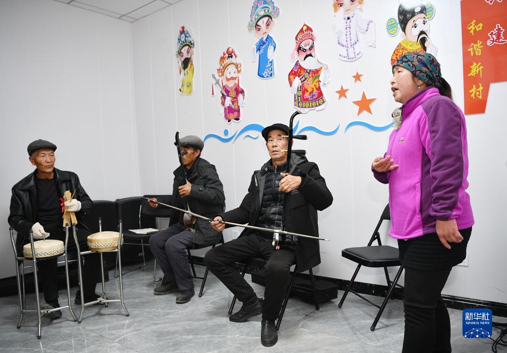 留守老人在神林鄉楊野河村新時代文明實踐站文化活動室唱秦腔(11月30日攝)。