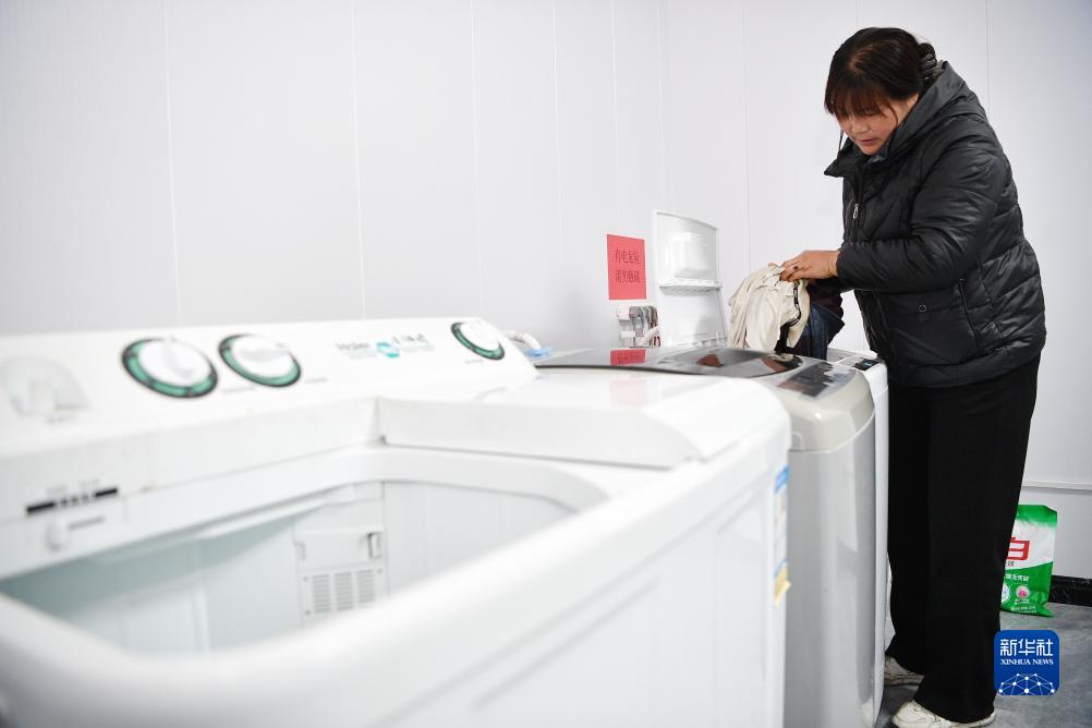 志願者在神林鄉楊野河村新時代文明實踐站愛心洗衣房為老人免費洗衣服(11月30日攝)。