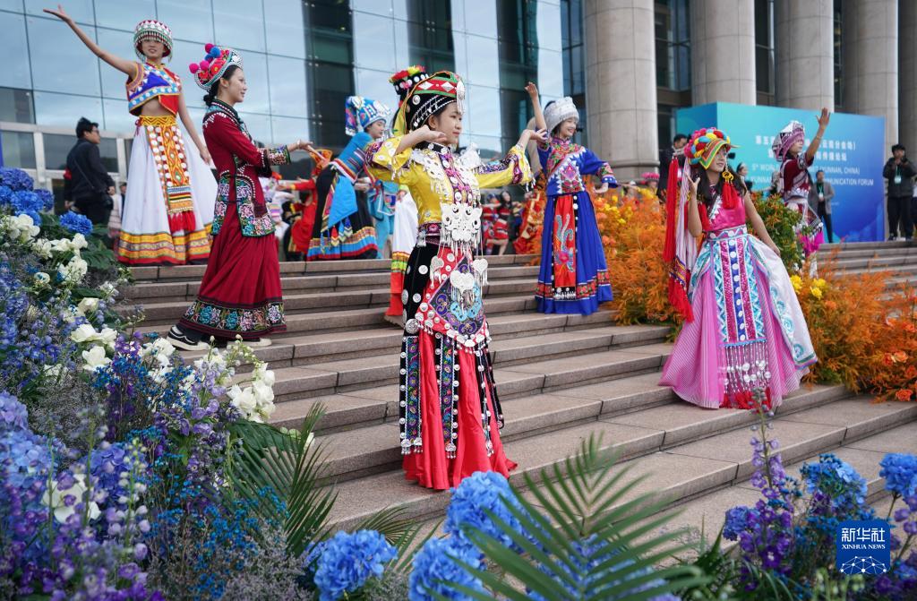 12月5日,演員在第五屆世界媒體峰會(雲南分會場)暨第二屆大象國際傳播論壇開幕式前表演。