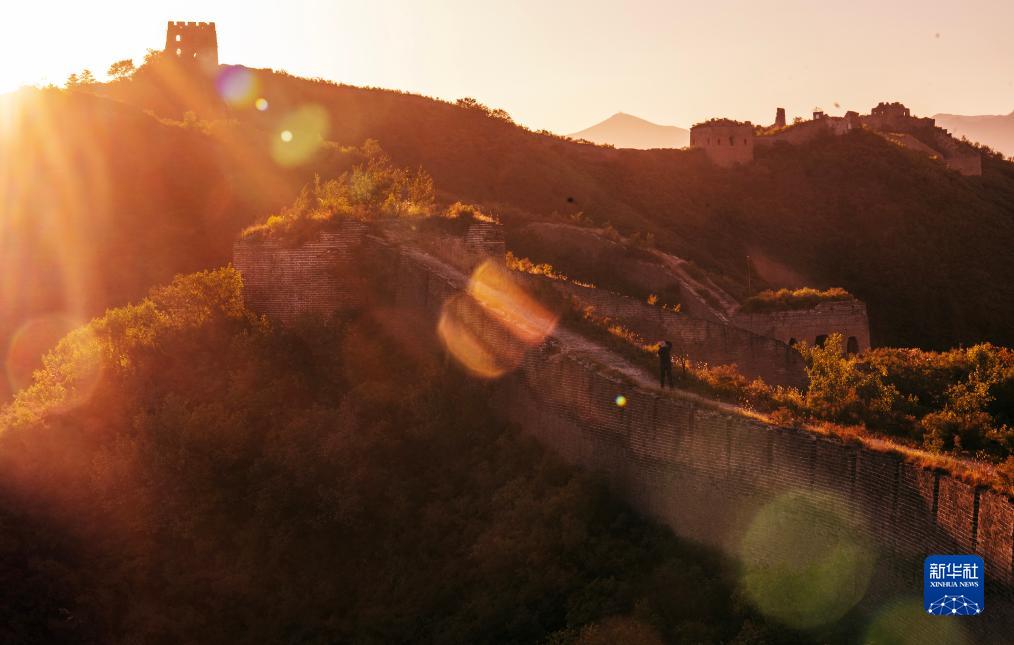清晨,一名攝影師在拍攝古北口長城(9月28日攝)。