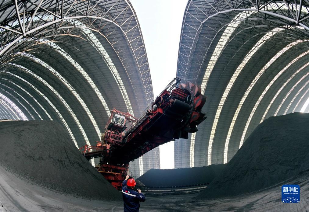 12月5日,工人在唐山港曹妃甸港區一封閉式煤炭堆場工作。