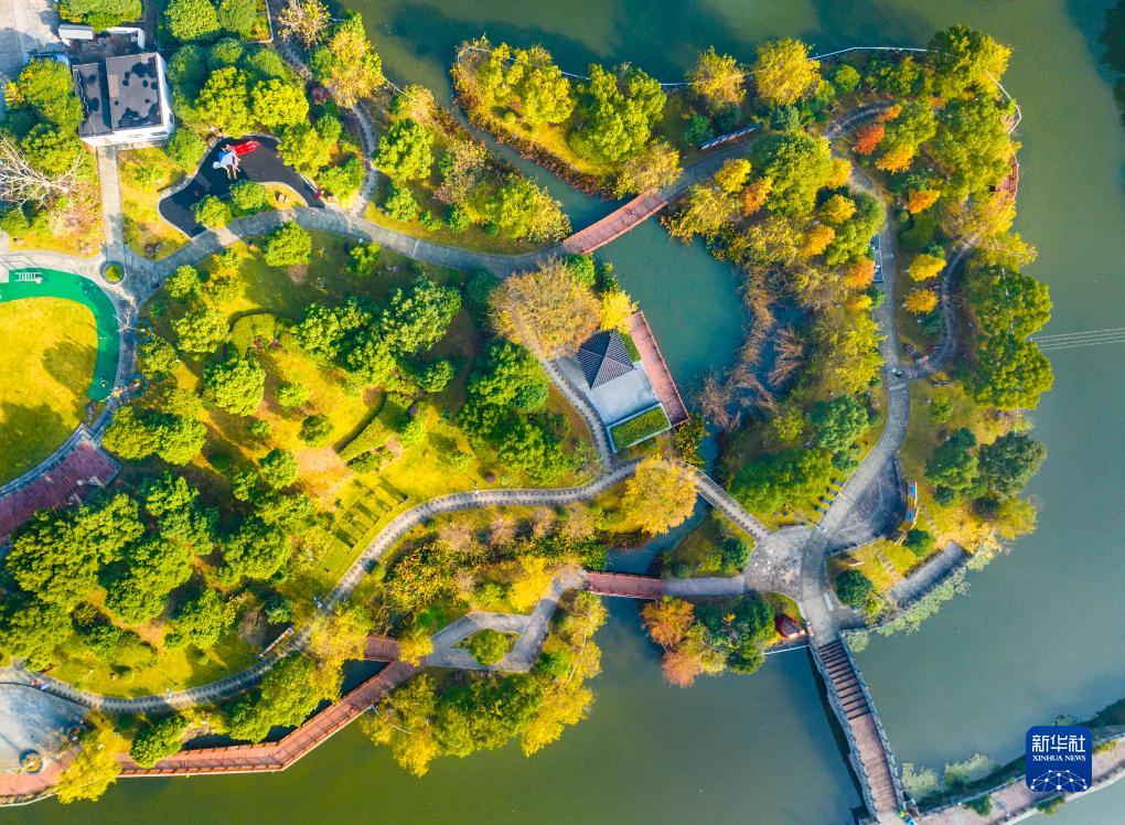 12月5日,浙江省寧波市鄞州區五鄉鎮仁久村景色如畫(無人機照片)。