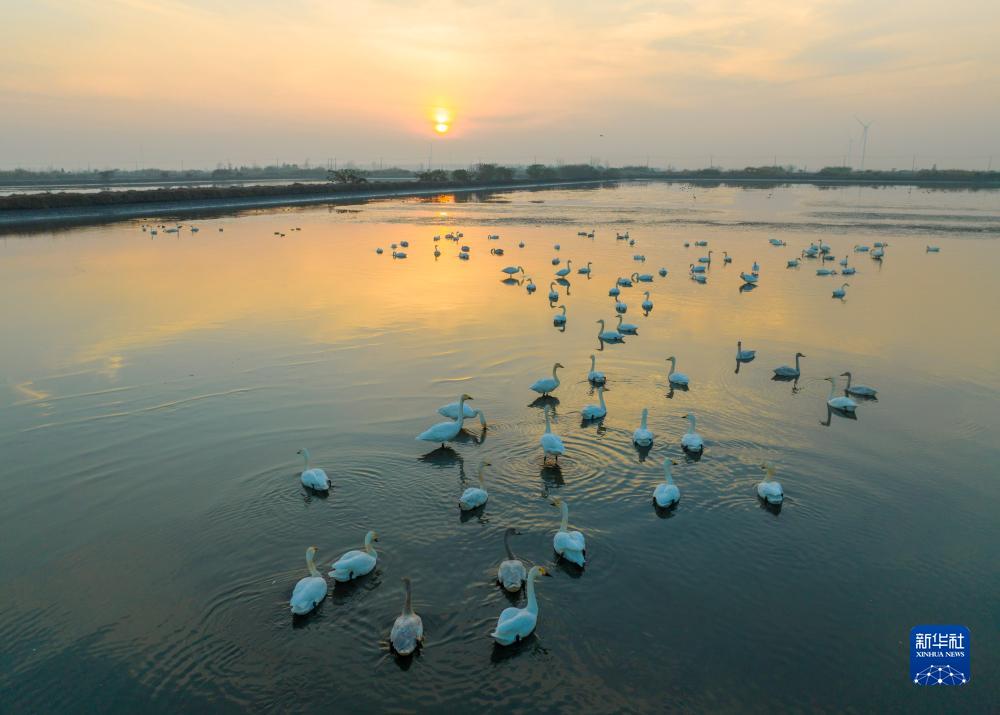 12月5日,候鳥棲息在江蘇省興化市裏下河國家濕地公園內(無人機照片)。