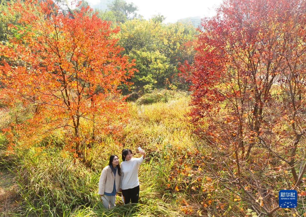 12月5日,在位於湖南省衡陽市的南華大學,學生在自拍留影(無人機照片)。
