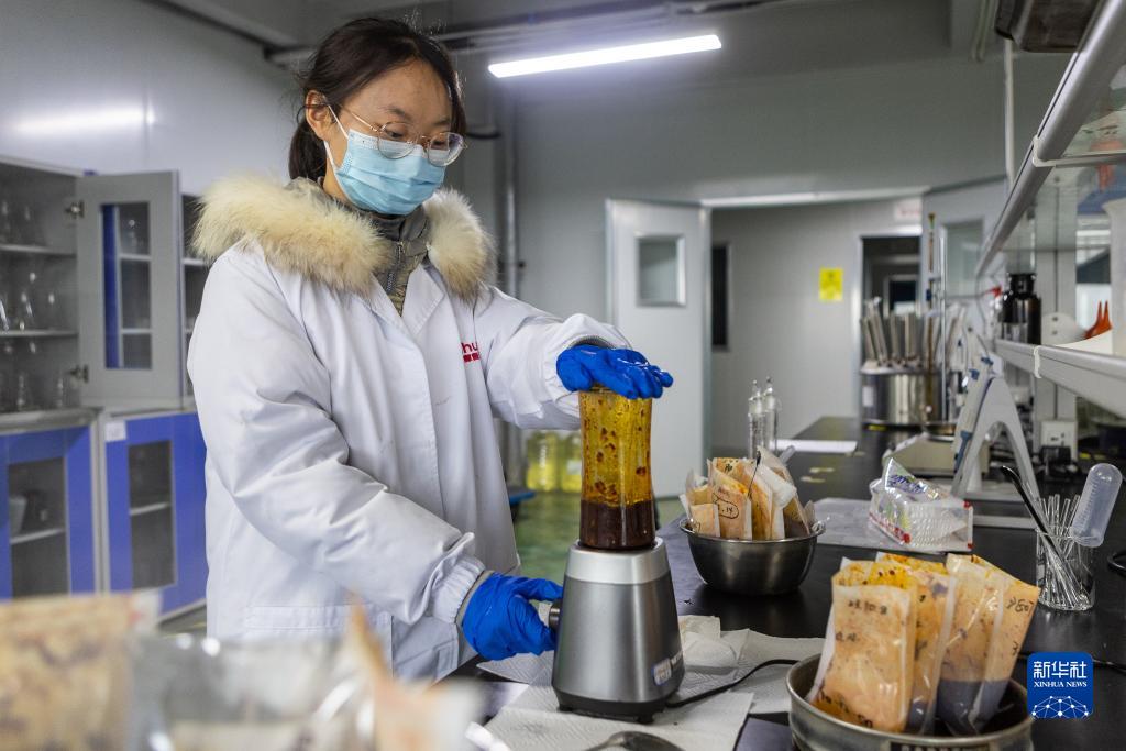 12月5日,在重慶市合川區的重慶聚慧檢驗檢測有限公司,檢測員在理化實驗室進行火鍋底料樣品製備。