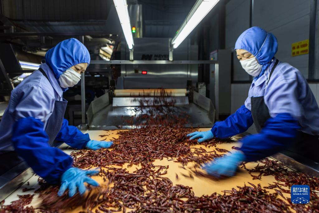 12月5日,在重慶市合川區的重慶梅香園實業集團有限公司,工人們在辣椒生産車間作業。
