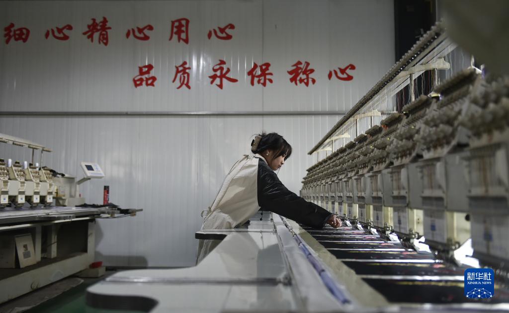 12月5日,村民在霍莊村社火電商産業基地的刺繡車間忙碌。