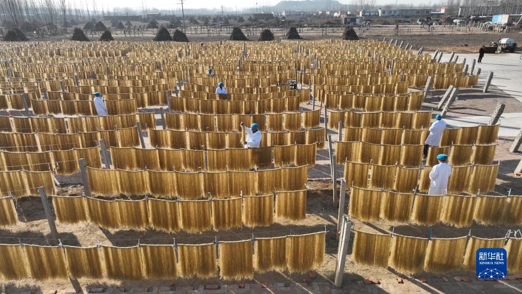 初冬時節,氣溫驟降,正是傳統手工粉條加工的好時節。在河北省遷安市,農民們忙着加工晾曬粉條供應市場。近年來,遷安市着力構建“一村一品”産業發展格局,鼓勵有條件的村莊和農戶利用冬閒時節從事粉條加工産業,不斷開拓省內外市場,有效拓寬群眾增收途徑。