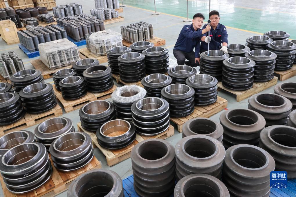 12月6日,中鐵建華南高科的技術員進行盾構機刀圈成品檢測。