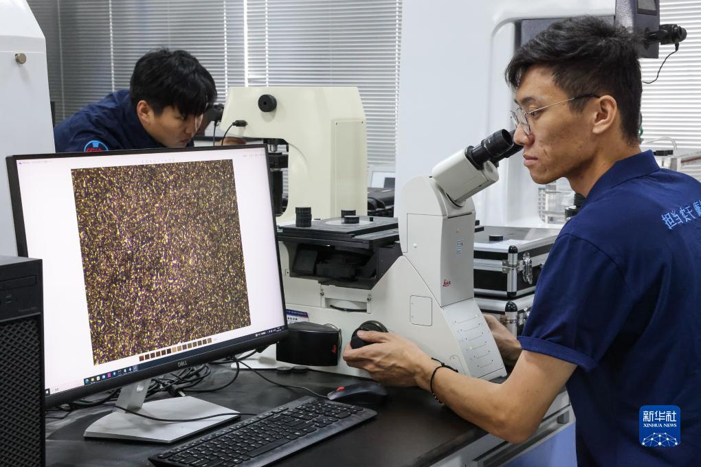12月6日,中鐵建華南高科的工程師通過觀察盾構機刀圈樣本的金相組織,研判刀圈金屬性能。