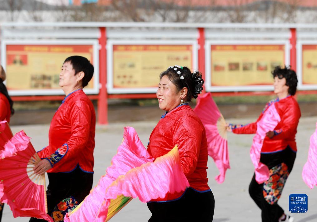 12月6日,肥鄉區田寨村村民在文化廣場上跳廣場舞。