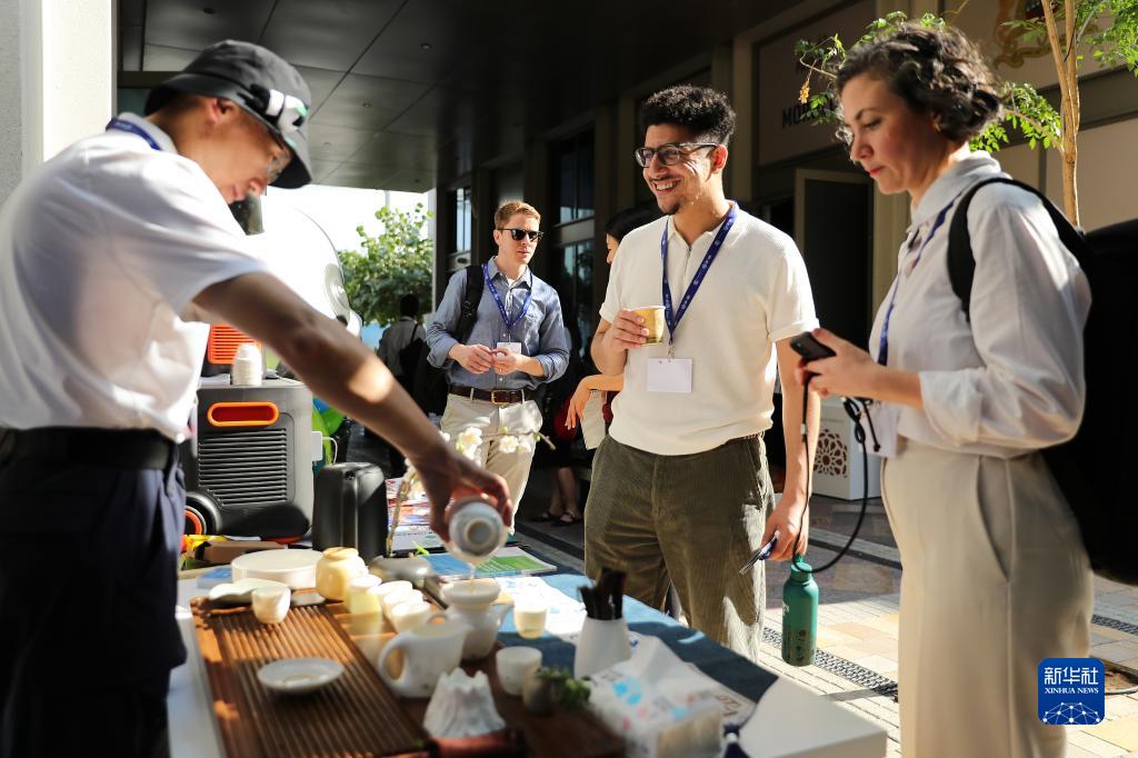 12月6日,在聯合國氣候變化迪拜大會中國角,參會者品嘗中國茶。
