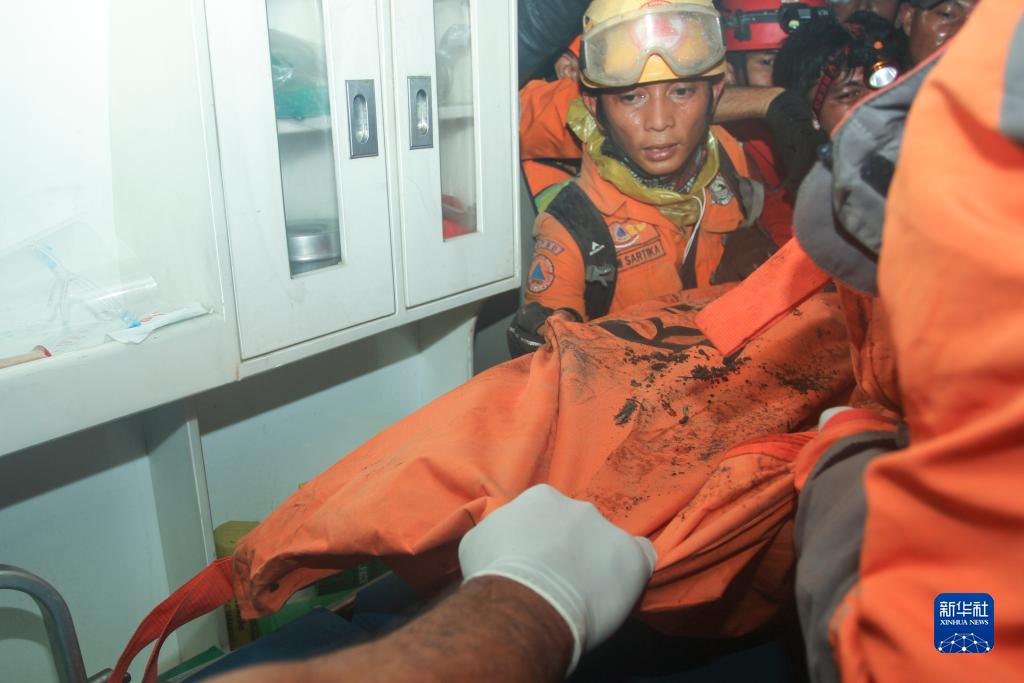 12月6日,在印度尼西亞西蘇門答臘省的馬拉皮火山附近,搜救人員轉移一具遇難者的遺體。