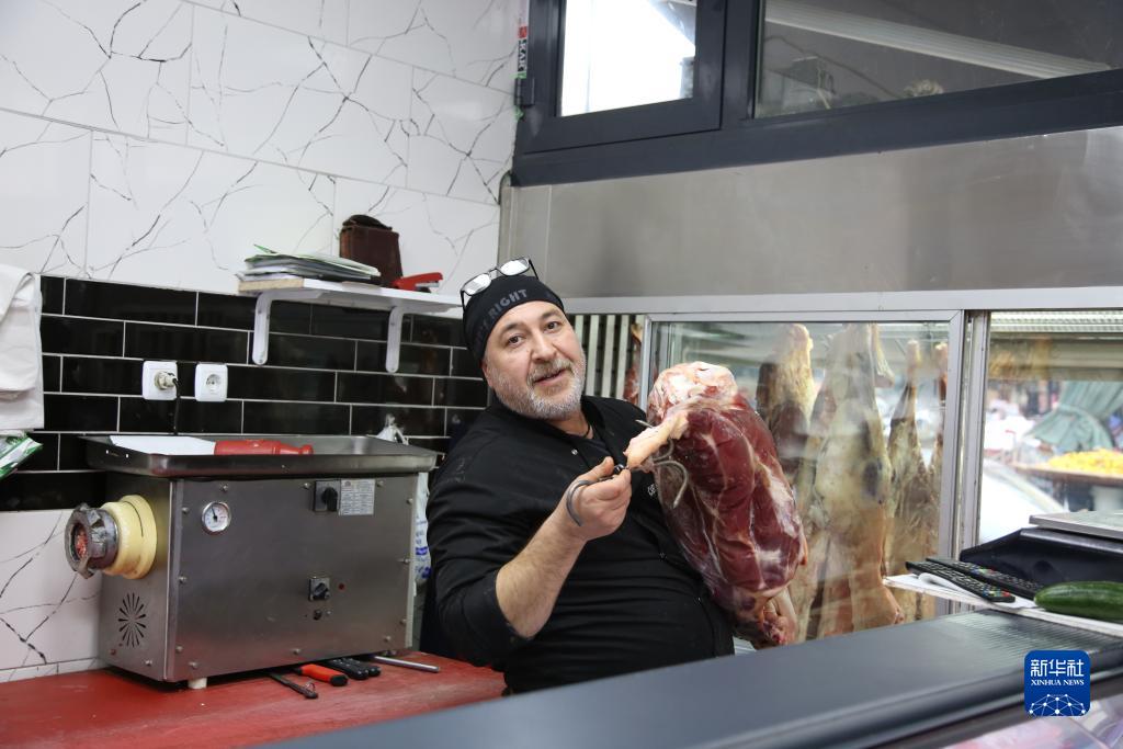 12月6日,一名男子在土耳其卡赫拉曼馬拉什的肉鋪工作。