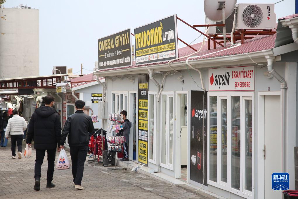 這是12月6日在土耳其卡赫拉曼馬拉什拍攝的用集裝箱改造的店舖。