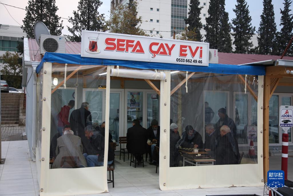 這是12月6日在土耳其卡赫拉曼馬拉什拍攝的用集裝箱改造的茶舍。