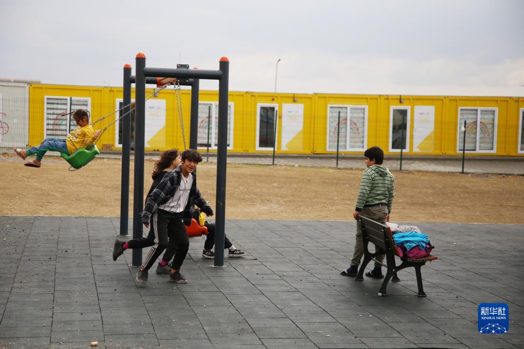 12月6日,在土耳其卡赫拉曼馬拉什,孩子們在“集裝箱社區”內玩耍。