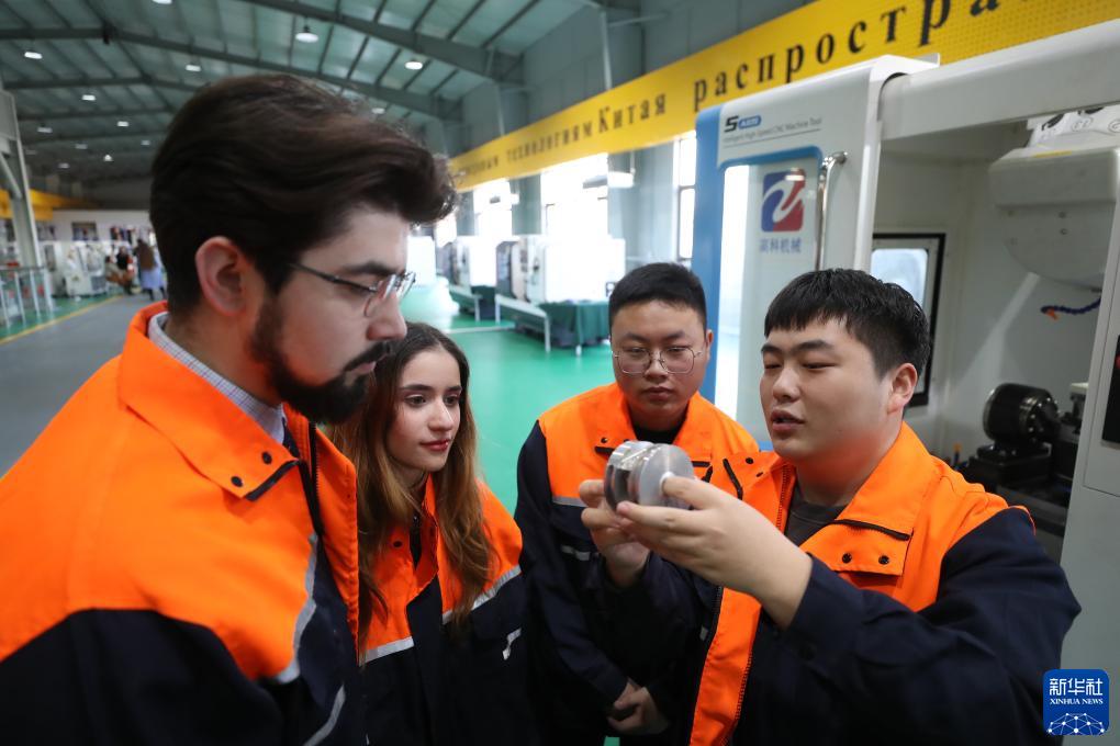 12月6日,沈工-華中數控“一帶一路”訂單班同學為俄羅斯伊爾庫茨克國立大學的留學生講解數控五軸加工中心操作經驗。
