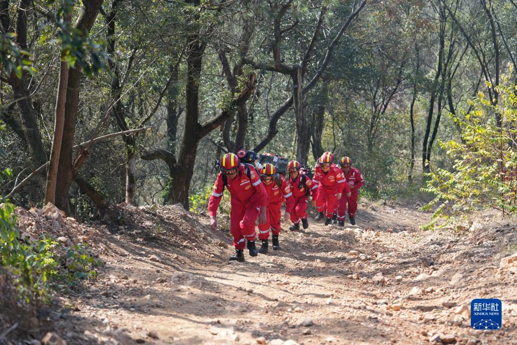 12月7日,在長沙岳麓山風景名勝區桃花嶺景區,森林消防員在演練中巡山查找隱患點。