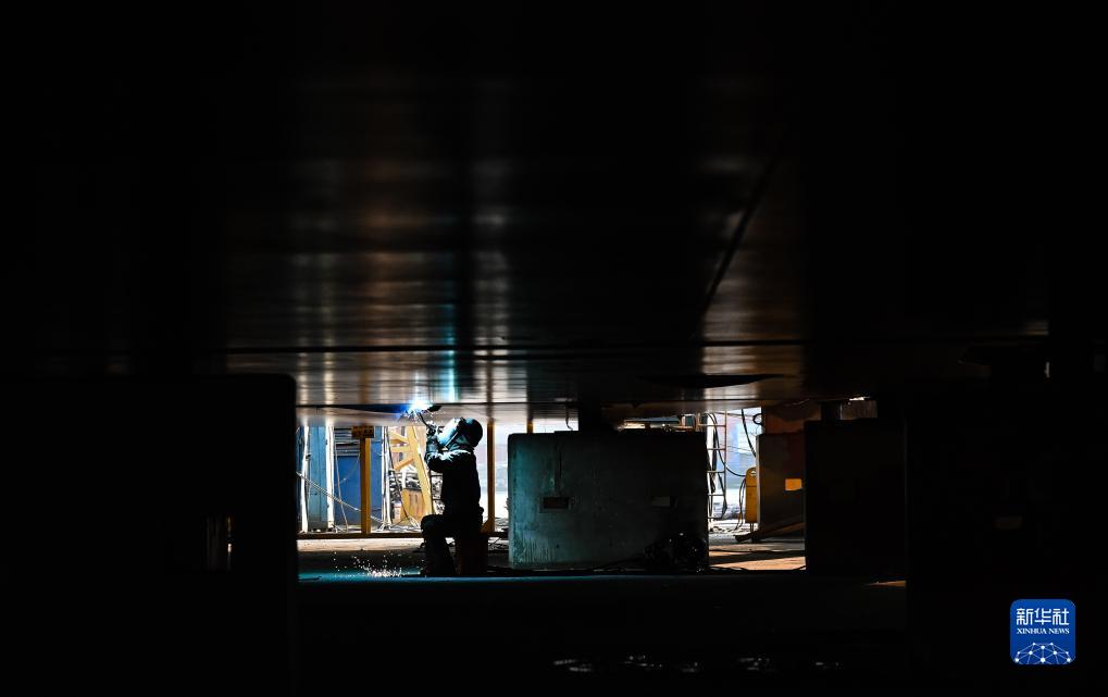 12月5日,在位於江蘇省泰興市的江蘇揚子鑫福造船有限公司,工人在廠區作業。