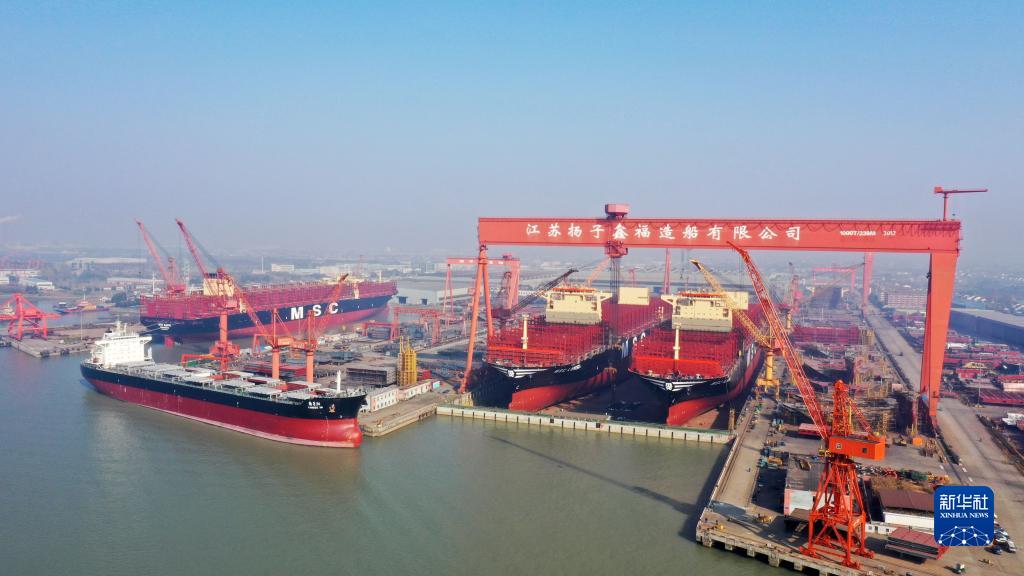 12月5日拍攝的位於江蘇省泰興市的江蘇揚子鑫福造船有限公司的船塢(無人機照片)。