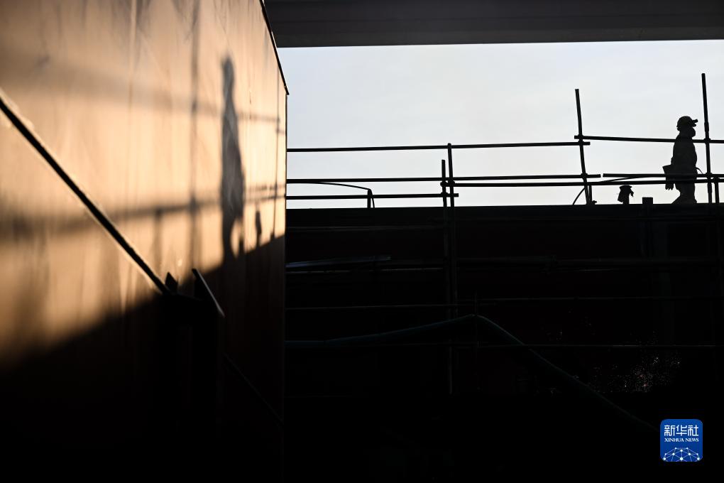 12月5日,在位於江蘇省泰興市的江蘇揚子鑫福造船有限公司,一名工人從作業現場走過。