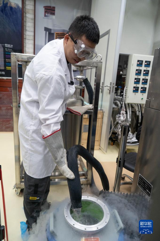 清華大學CDEX實驗組成員在中國錦屏地下實驗室一期罐裝液氮(9月19日攝)。