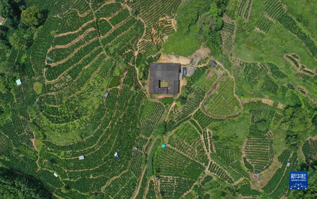 梧州市蒼梧縣六堡鎮塘平村的茶園(9月6日攝,無人機照片)。