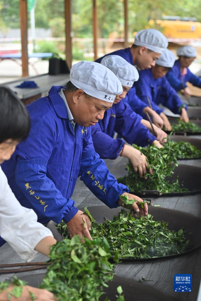 在梧州市蒼梧縣六堡鎮黑石山茶廠,工人在加工茶葉(9月6日攝)。