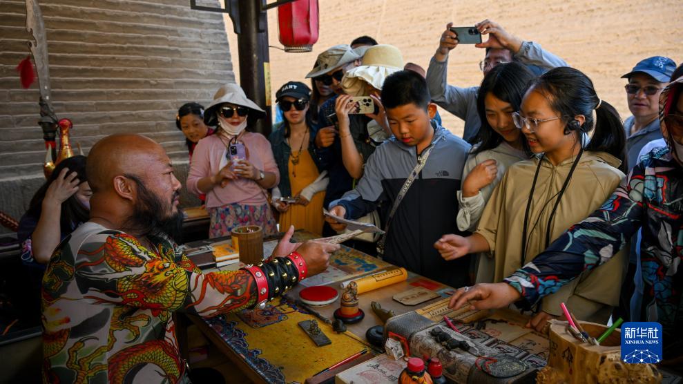 光頭絡腮鬍的李森身披甲胄,在景區內扮演明朝嘉峪關最高軍事長官,為游客簽發文創産品“關照”(通關文牒)。自2001年起,他在嘉峪關“守關”20多年,親眼見證了嘉峪關旅游業的發展變化。