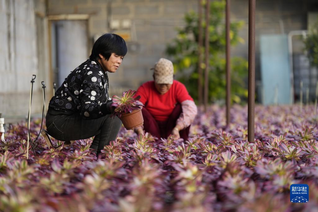 12月7日,農民在河北省唐山市豐南區胥各莊鎮一處大棚內打理多肉植物。