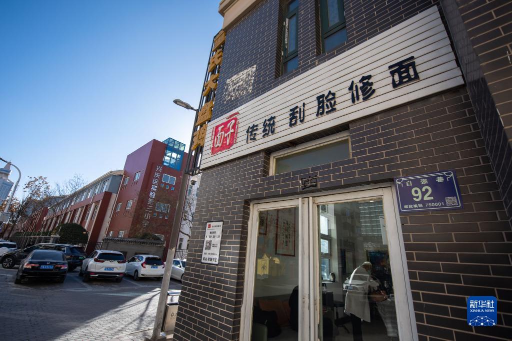 這是12月6日在銀川市興慶區自強巷拍攝的修麵店門口。