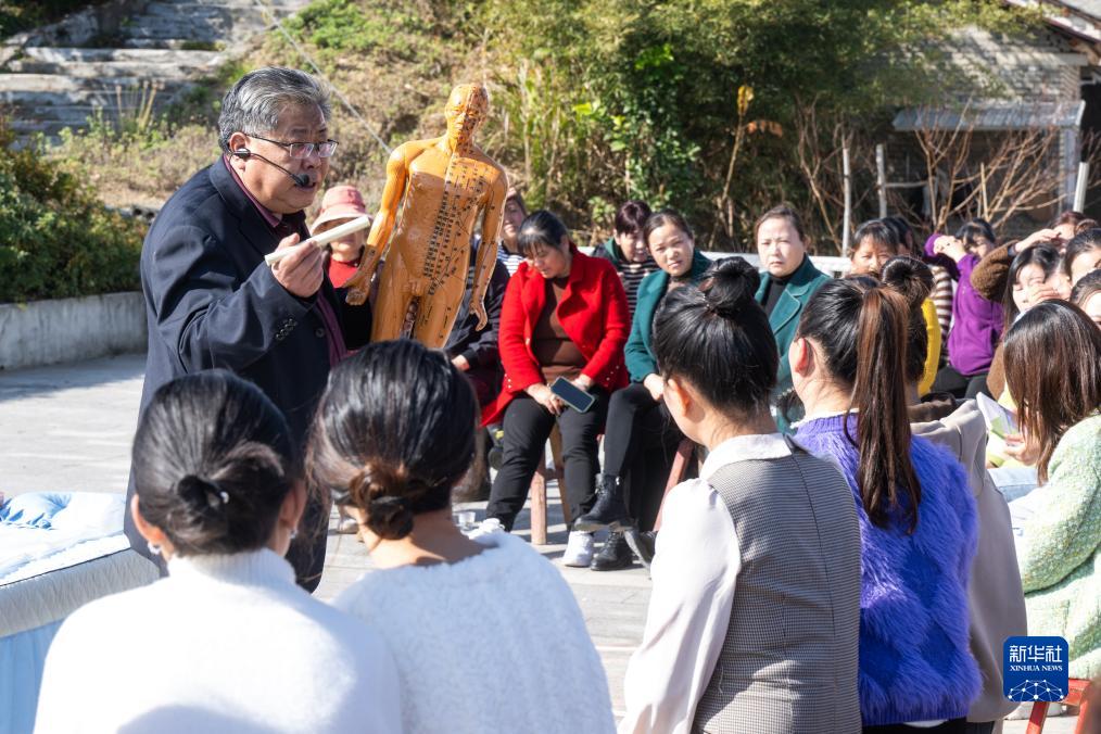 12月7日,在蘄春縣青石鎮大屋村,中醫艾灸師為村民講授艾灸技法。