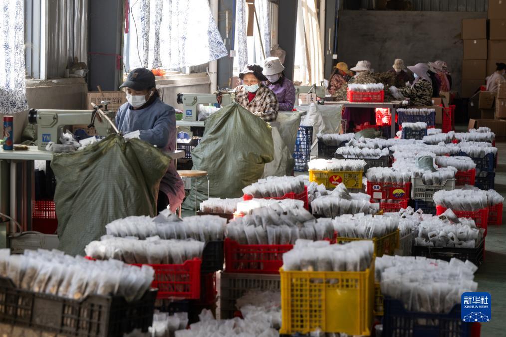 12月7日,在蘄春縣高新鋪村的就業幫扶車間,工人在加工蘄艾産品。